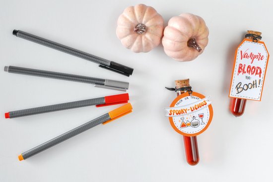 Ezek a kreatív halloweeni bájitalok nagy benyomást fognak kelteni a hátborzongató partin. A „vámpírvérrel” töltött kis kémcsövek borzasztóan finomak, és a házi készítésű címkék igazán kiemelkedővé teszik őket. Hátborzongató vacsorádnak pont megfelelő lesz a megjelenése, és a vendégek tökéletesen hátborzongatóan fogják érezni magukat.