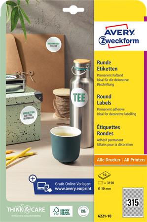 Etikett, univerzális, 10 mm, kör, AVERY ZWECKFORM, 3150 etikett/csomag